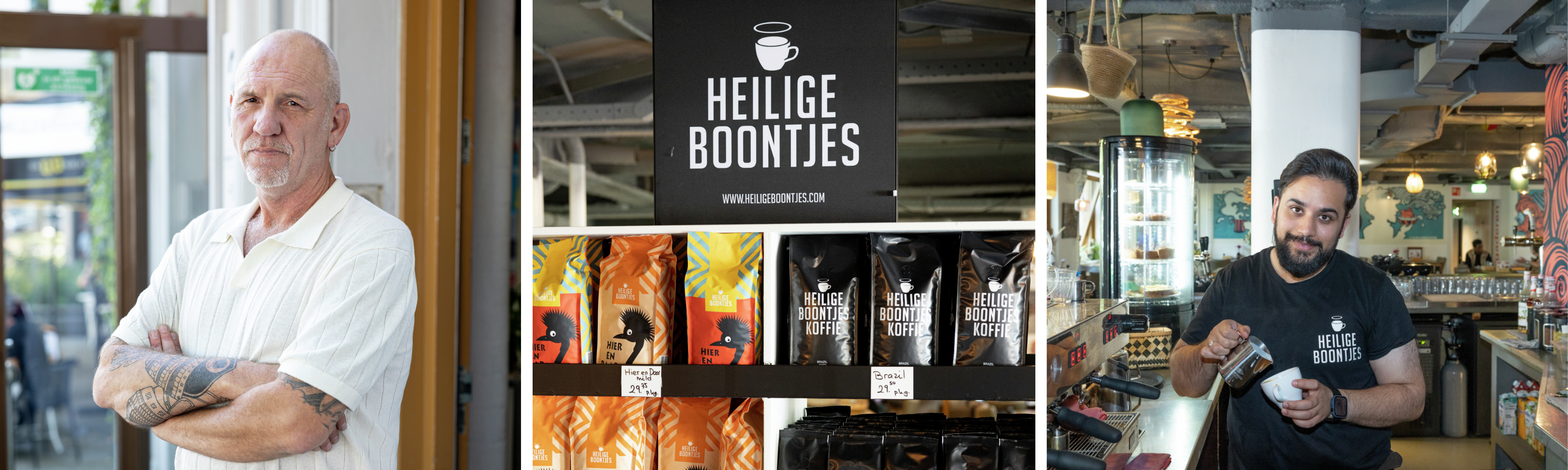 Sommige levensverhalen lijken rijp voor een boek. Het verhaal van Rodney zou je als volgt kunnen samenvatten: oude boef begint koffiehuis en biedt een werkplek aan voormalig delinquenten en kwetsbare jongeren. Notabene onder de oude cellen op de eerste etage, waar Rodney menig nacht heeft doorgebracht. Samen met een politieagent, in een oud politiebureau. In Heilige Boontjes liggen de verhalen letterlijk voor het oprapen. Zo ook het verhaal van Paolo, Rodney’s oude dealer en nu evenementenleider. Of dat van Jamshad, die als kind getuige was van de moord op zijn vader, in een depressie belandde en nu als barista (en bedrijfsleider) de lekkerste koffies zet. Altijd met een lach op zijn gezicht, niet kapot te krijgen.